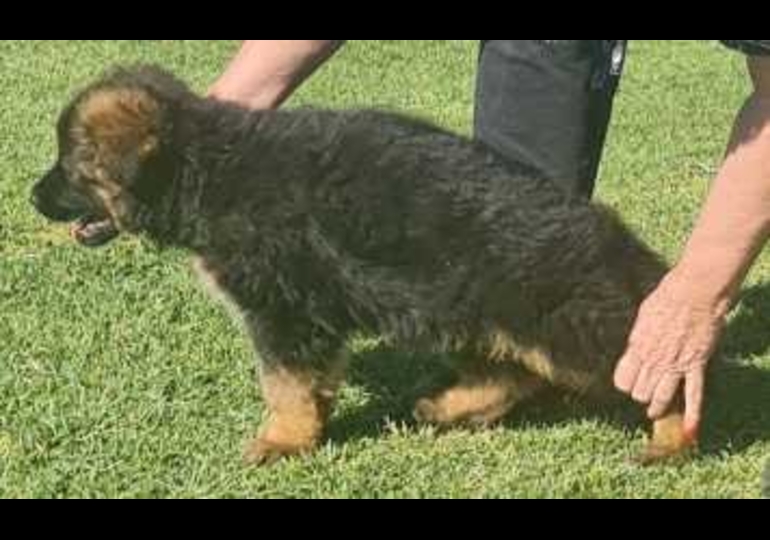 The Long Stock Coat GSD (long-haired) has longer outer hair. The trousers are long and thick and the tail is very bushy. A Long Stock Coat without an undercoat is not permissible.